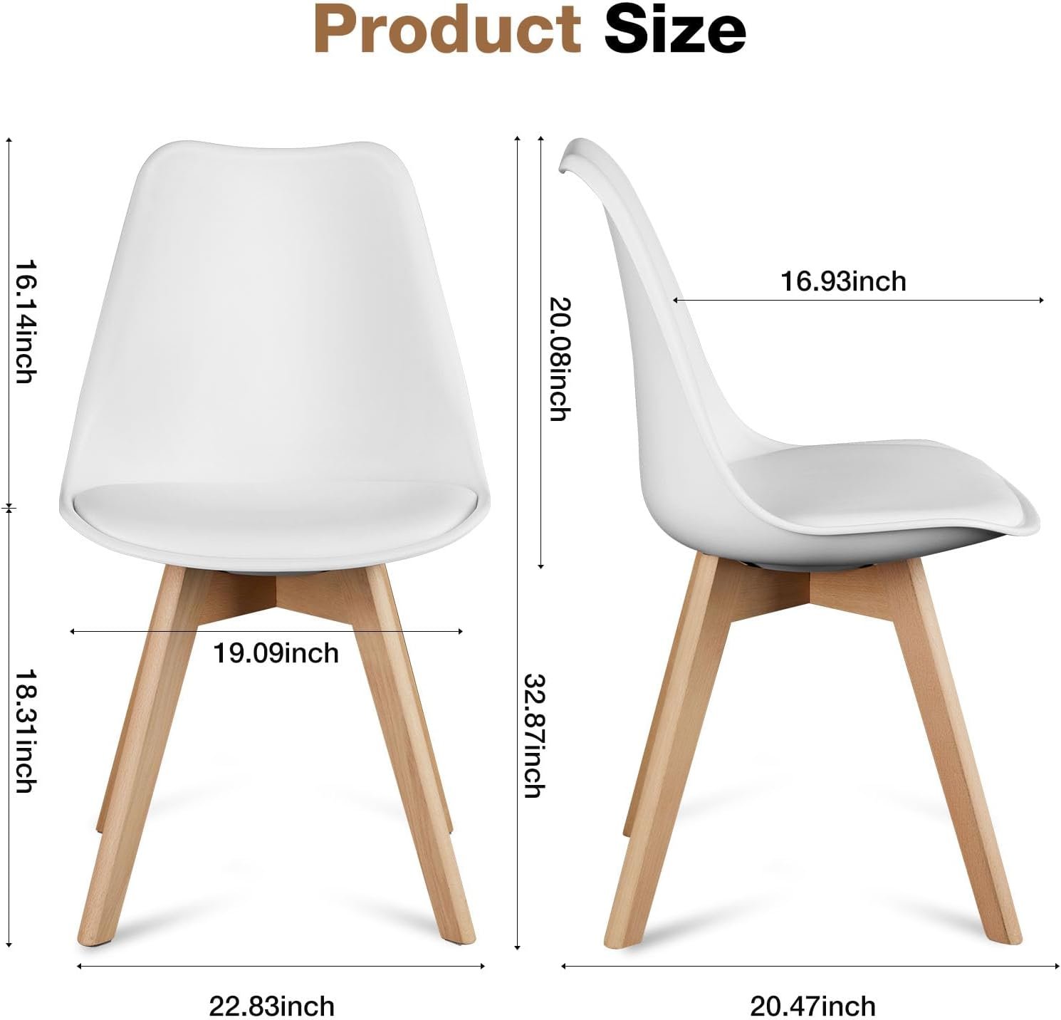 • Multi Purpose: White dining table chairs are simple and beautiful, suitable for family dining table, dining room, guest room, kitchen, apartment, office, and holiday decoration. Modern style dining chairs with overall size: 22.83 “W x 20.47 “D x 32.87 “H. The enlarged size is suitable for most tables and is versatile