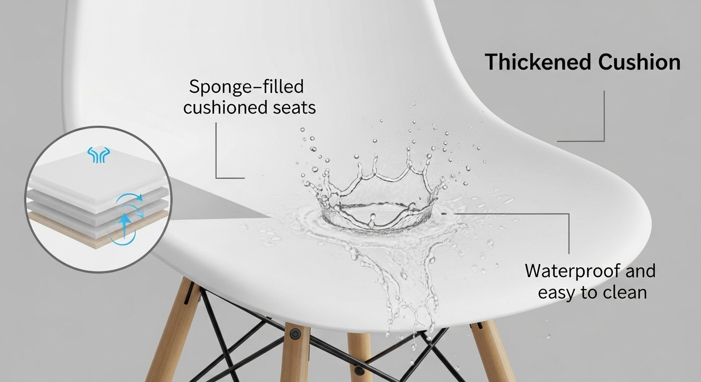 Instantly upgrade your dining room with the OLIXIS 4-Pack of Mid-Century Modern Chairs. This set features the iconic "Eiffel" design with stable, solid wood legs. Its best feature is the soft, fixed PU leather cushion on an ergonomic white shell, offering a major comfort upgrade over standard plastic chairs. Stylish, easy to clean, and an incredible value, this 4-piece set is the perfect, affordable solution for any home.