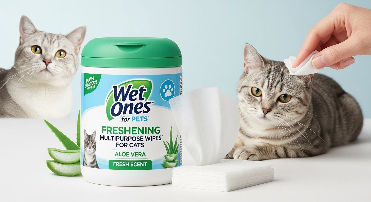 Wet Ones for Pets Freshening Multipurpose Wipes for Cats with Aloe Vera, Fresh Scent – Easy to Use Cat Cleaning Wipes for Pet Grooming in Canister