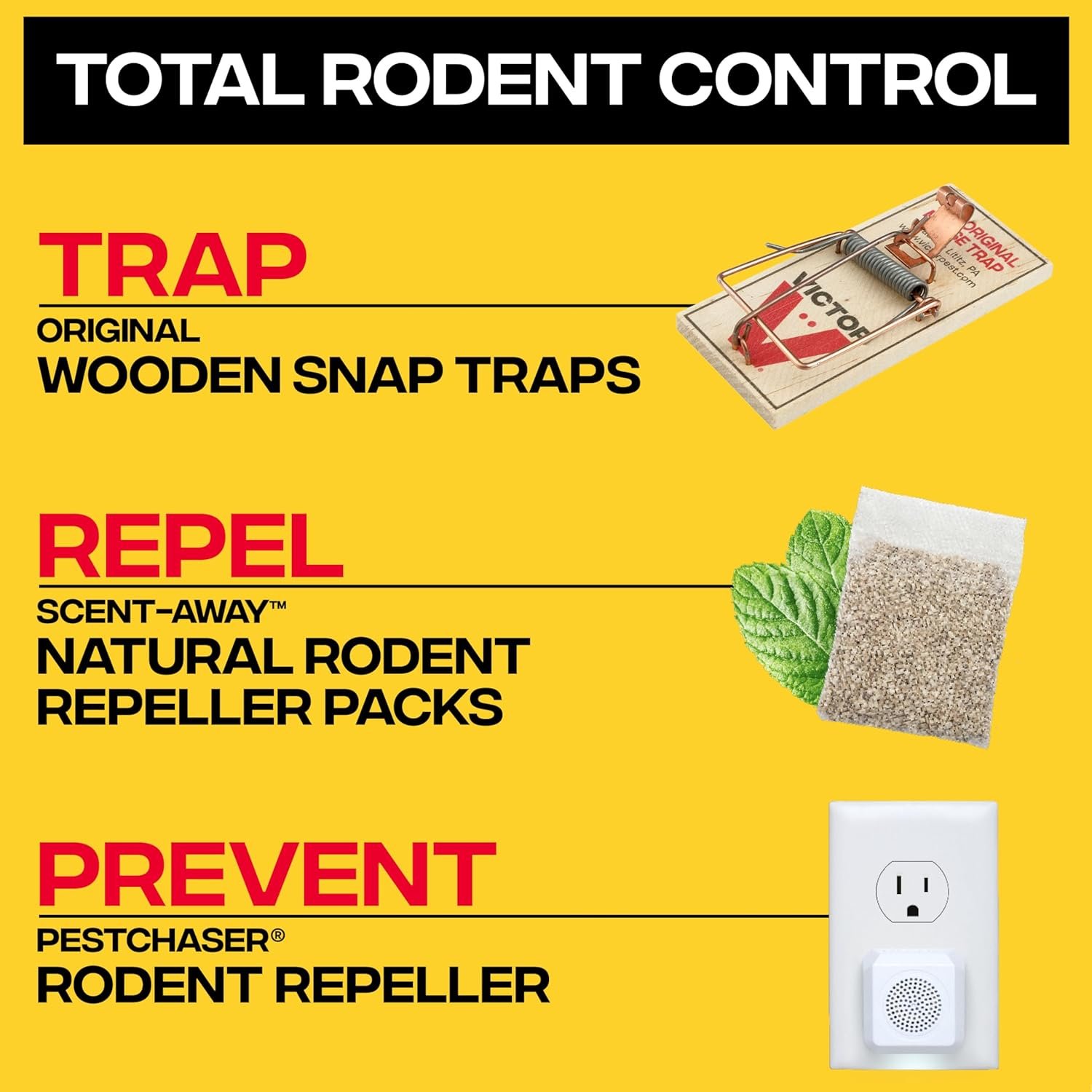 Solve your mouse problem quickly and effectively with the 12-Pack of Victor Metal Pedal Traps. This is the original, #1-selling wooden snap trap, built with a powerful spring and a sensitive metal pedal for an instant, humane kill. The FSC® Certified wood base is sustainably sourced, and the poison-free design is a safe, reliable, and affordable solution for any home.